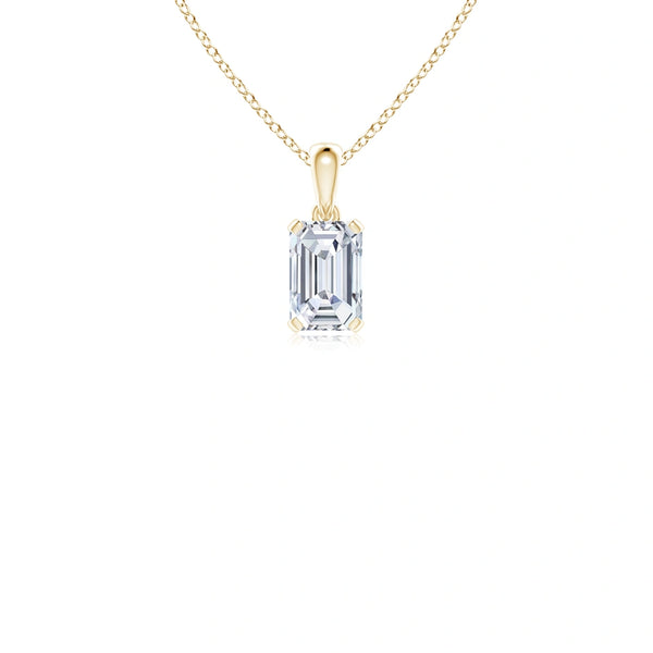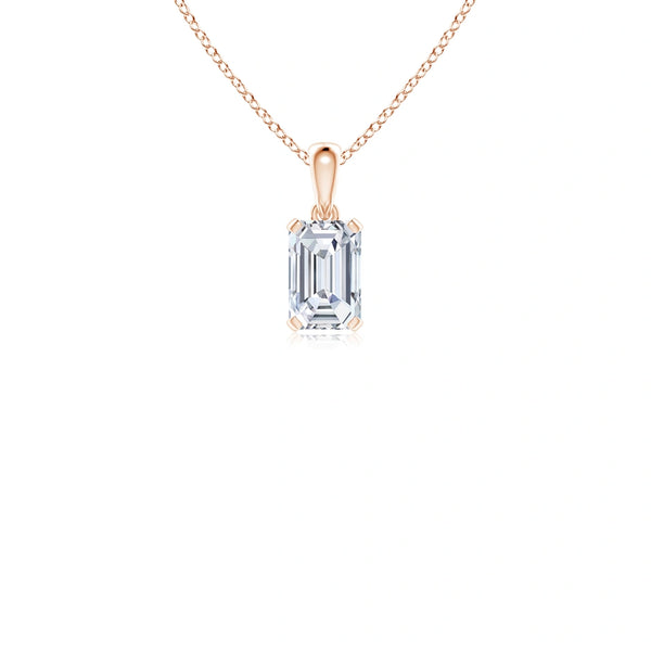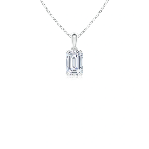 This prong-set emerald-cut lab-grown diamond solitaire pendant showcases a precisely cut diamond that maximizes brilliance and clarity. Crafted with expert attention to detail, the pendant offers a sustainable alternative to mined diamonds without compromising on quality or elegance. Its classic solitaire design ensures timeless appeal, making it a refined choice for those seeking both ethical sourcing and sophisticated style.
