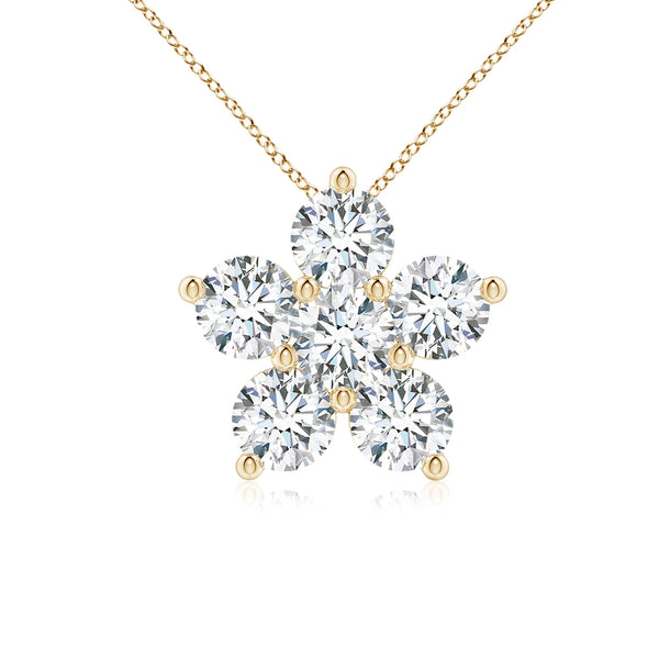Elevate your elegance with this Round Lab-Grown Diamond Floral Cluster Pendant. Expertly crafted, it features a cluster of brilliant lab-grown diamonds arranged in a delicate floral design, offering exceptional sparkle and ethical luxury. Perfect for those who appreciate sustainable fine jewelry without compromising on brilliance or craftsmanship.