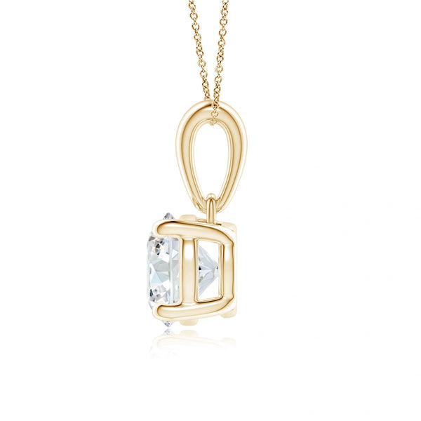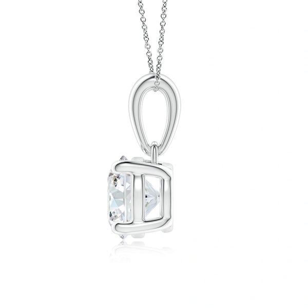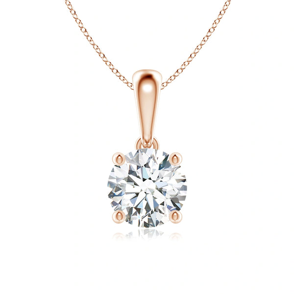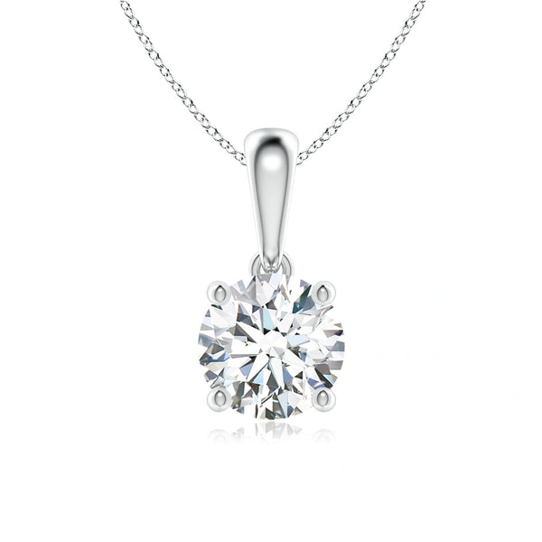 This Classic Solitaire Prong-Set Round Lab-Grown Diamond Pendant features a precisely cut round diamond secured by a traditional prong setting, maximizing brilliance and light reflection. Crafted with lab-grown diamond technology, it offers an ethical and sustainable alternative without compromising on quality or sparkle. Ideal for those seeking timeless elegance combined with responsible sourcing, this pendant complements any outfit with understated sophistication