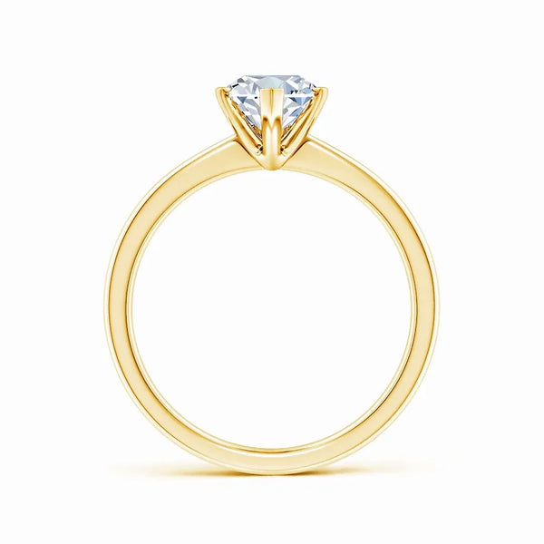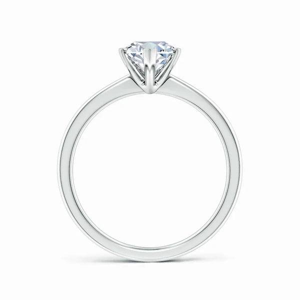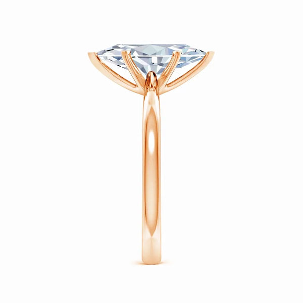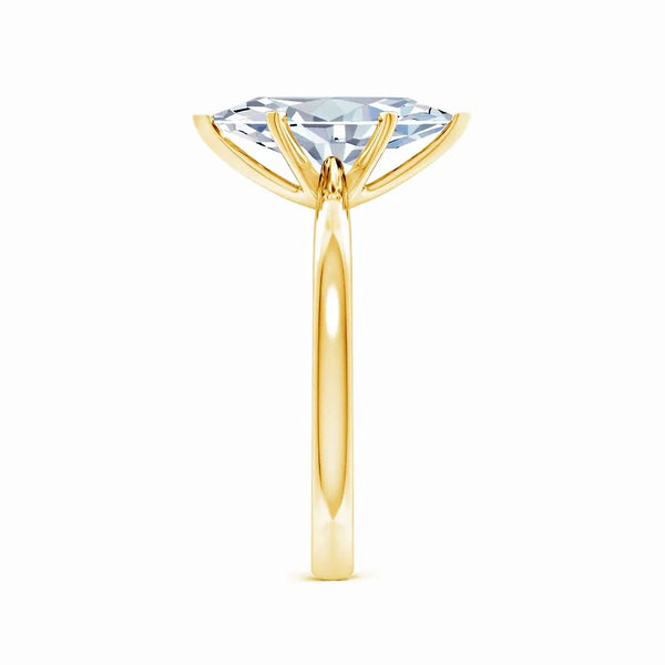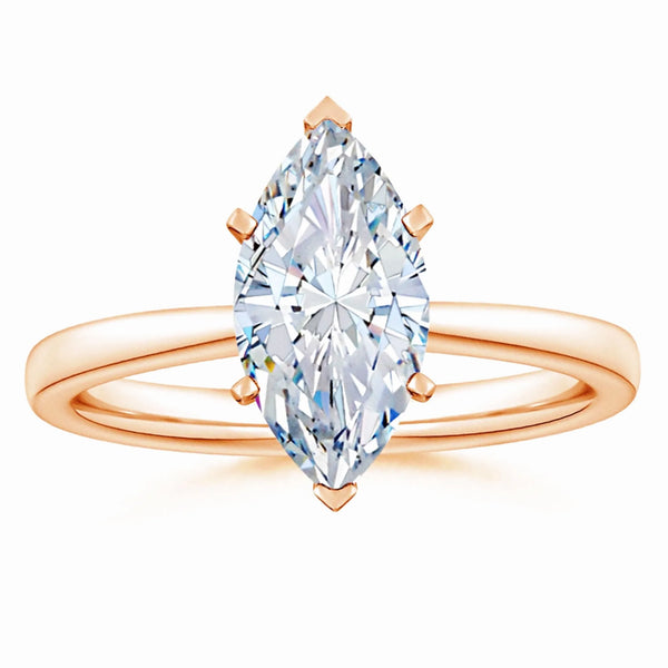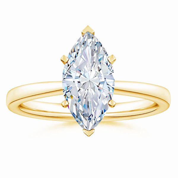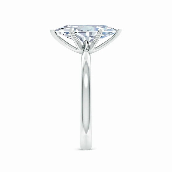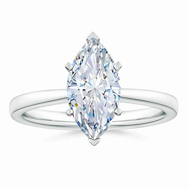 This solitaire engagement ring features a lab-grown marquise diamond set in a reverse tapered setting, enhancing the stone’s elongated shape and brilliance. Crafted with precision, the design offers a modern yet timeless appeal, ensuring the diamond remains the focal point. Ideal for those seeking an ethical and expertly crafted symbol of commitment.