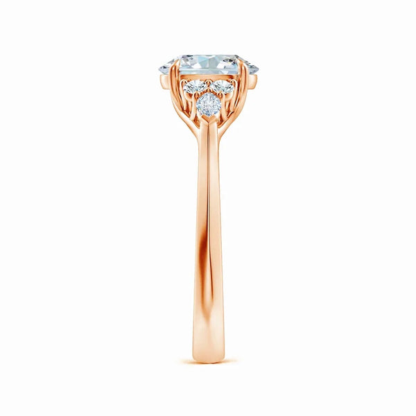This engagement ring features a stunning lab-grown oval diamond as the centerpiece, complemented by meticulously set side stones that enhance its brilliance. Crafted with precision, the ring offers an ethical and sustainable choice without compromising on quality or sparkle. Ideal for those seeking a sophisticated and responsible symbol of commitment.