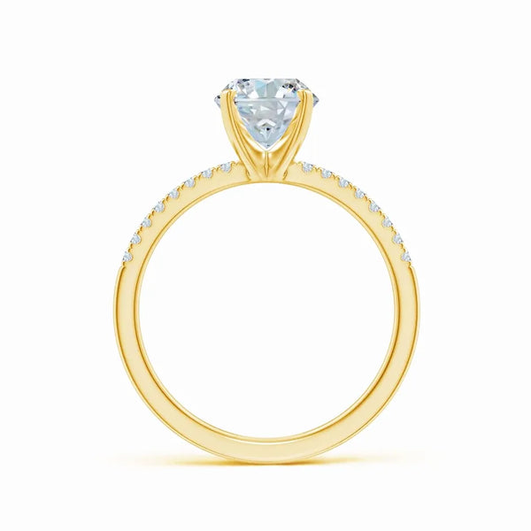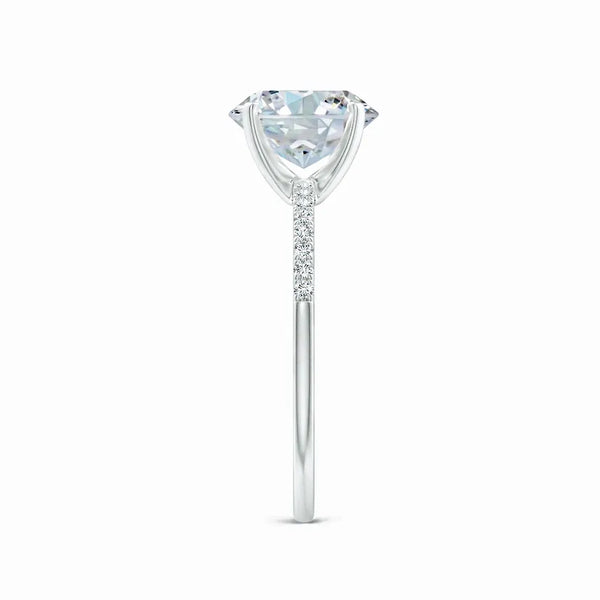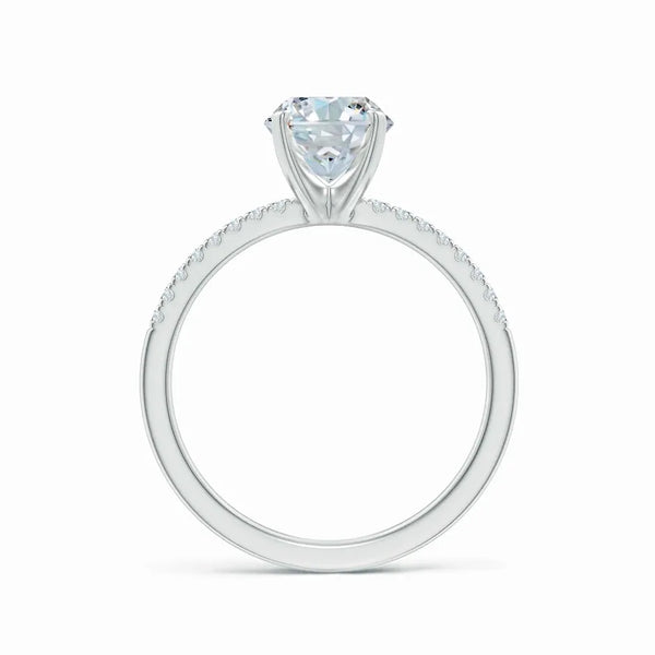 This Lab-Grown Oval Nail Head Diamond Classic Engagement Ring features a precisely cut oval diamond set securely with a nail head bezel, combining timeless elegance with modern craftsmanship. The lab-grown diamond offers exceptional brilliance and ethical sourcing, making it a sophisticated choice for a meaningful symbol of commitment. Its classic design ensures lasting appeal, while the durable setting protects the stone for everyday wear. Ideal for those seeking a refined and responsible engagement ring with expert-quality artistry.