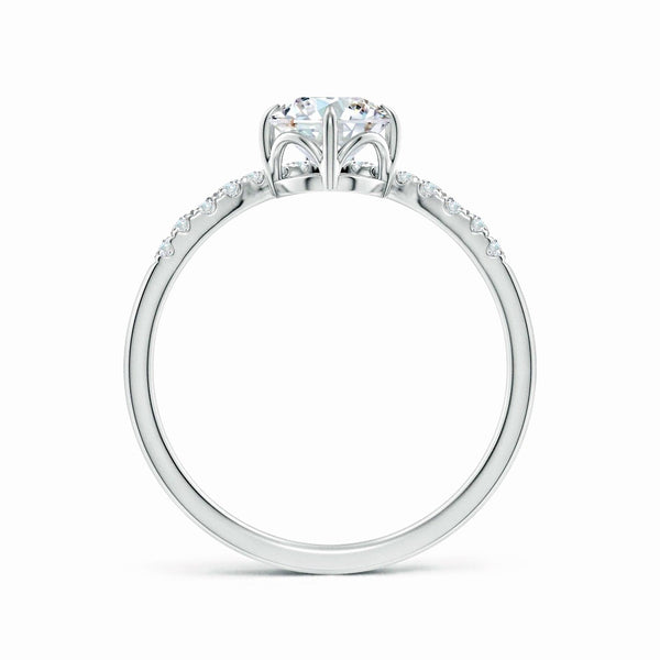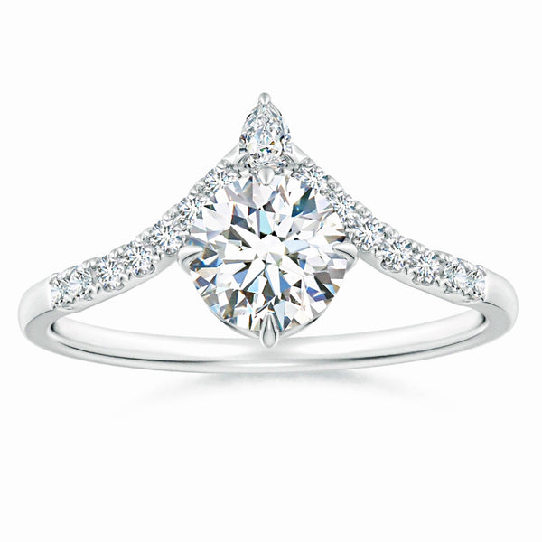 This Lab-Grown Round Diamond Herringbone Engagement Ring showcases expertly crafted round diamonds arranged in a distinctive herringbone pattern. Combining sustainable innovation with timeless elegance, it offers a brilliant sparkle and ethical appeal. Ideal for those seeking a sophisticated and environmentally conscious symbol of commitment.
