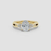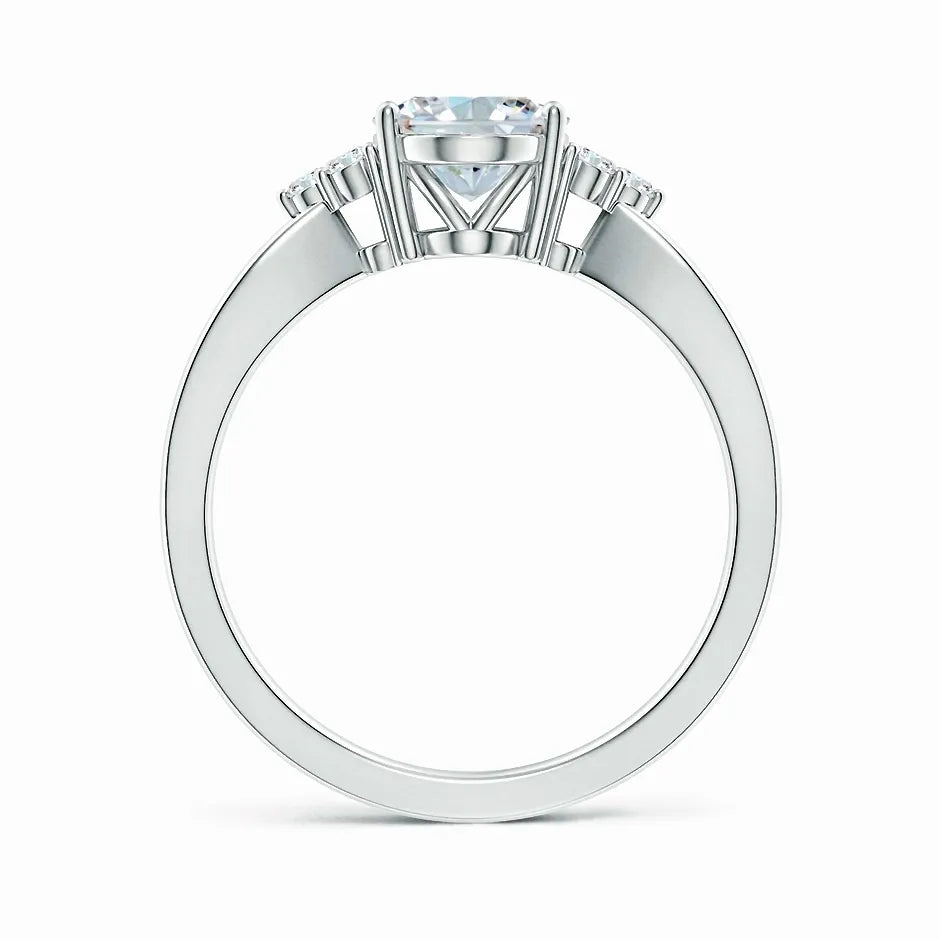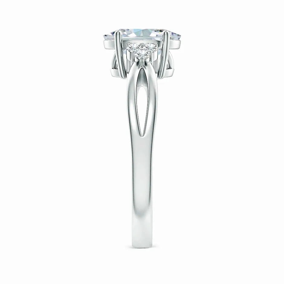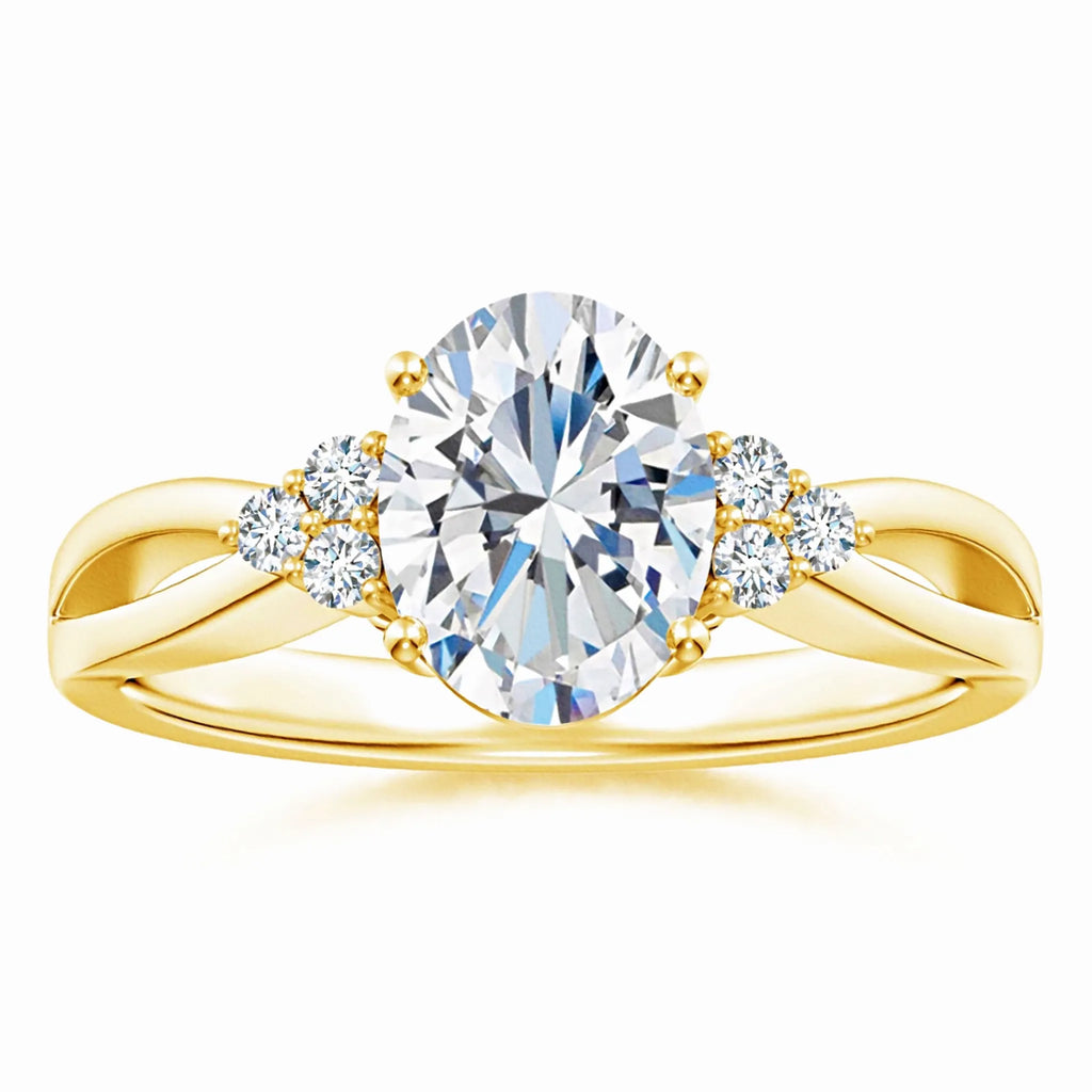 This lab-grown solitaire ring features a stunning oval diamond set on a split shank band, enhanced with delicate accent stones. Crafted with precision, it offers the brilliance and elegance of natural diamonds while being an ethical and sustainable choice. The split shank design adds a modern touch, ensuring a comfortable fit and highlighting the central diamond’s sparkle. Ideal for those seeking a sophisticated and responsible fine jewelry piece.