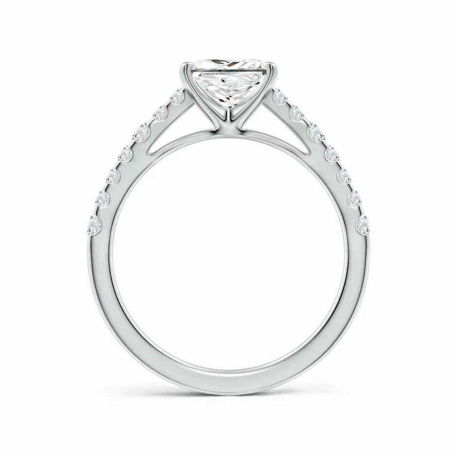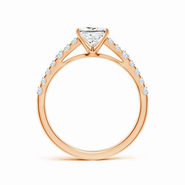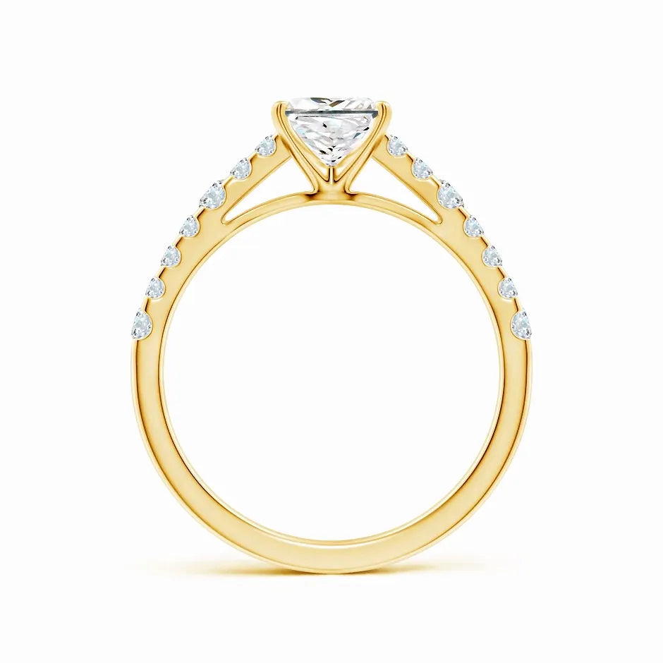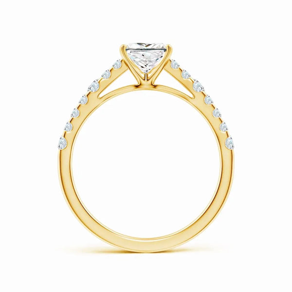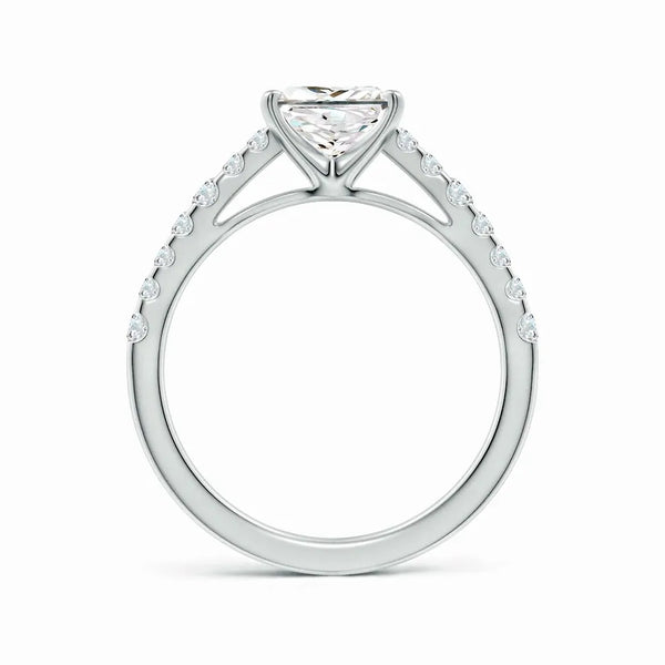 This Lab-Grown Solitaire Princess Cut Diamond Engagement Ring features a precisely cut princess diamond, offering exceptional brilliance and modern elegance. Crafted with sustainable lab-grown diamond technology, it provides an ethical and eco-friendly alternative without compromising on quality or sparkle. Perfect for those seeking a timeless symbol of commitment with a contemporary edge.