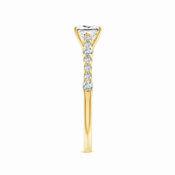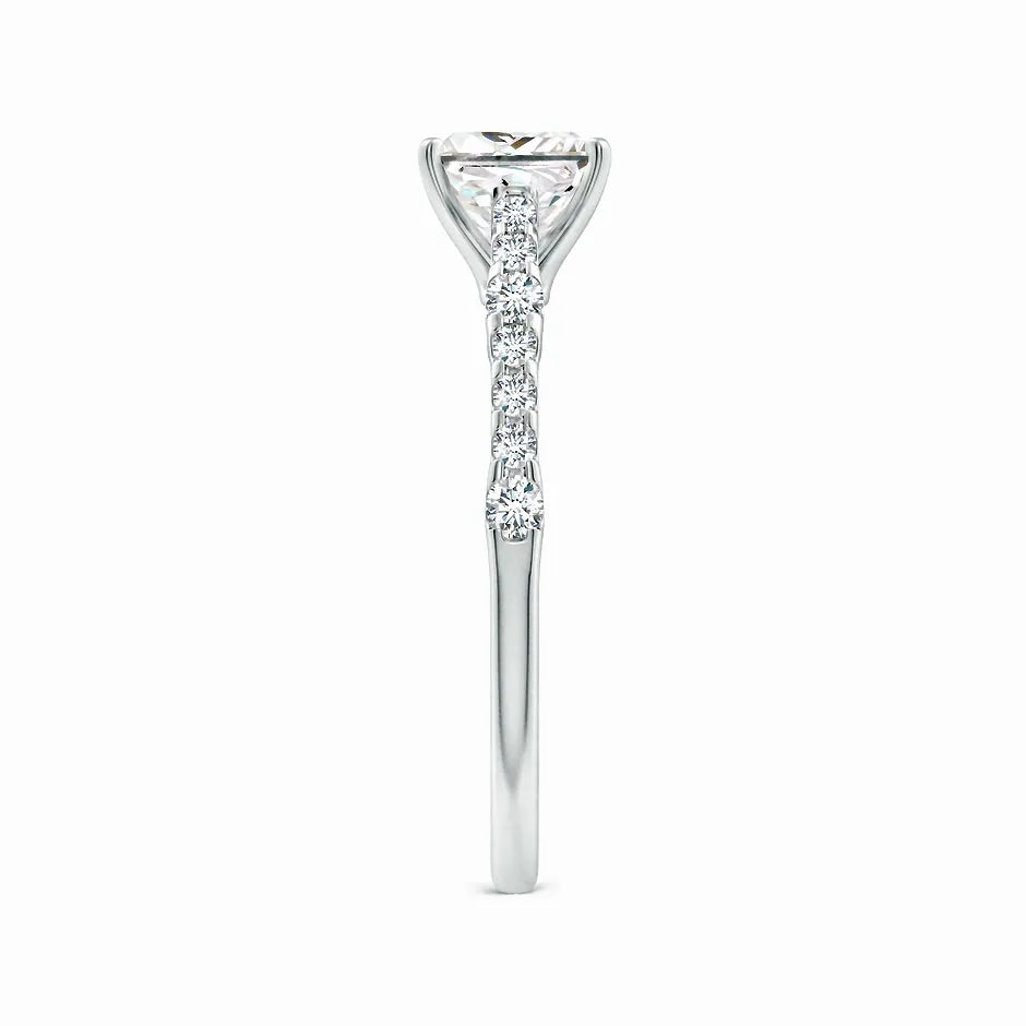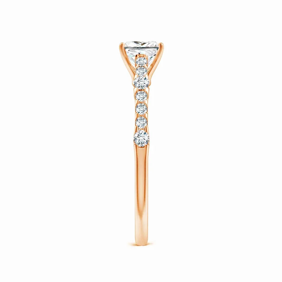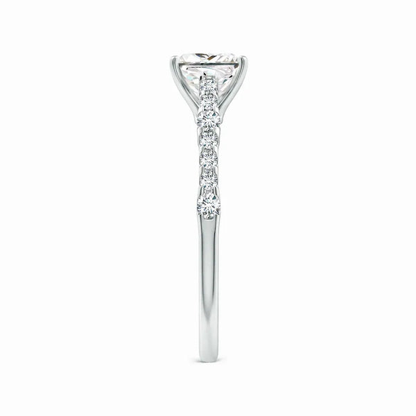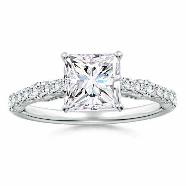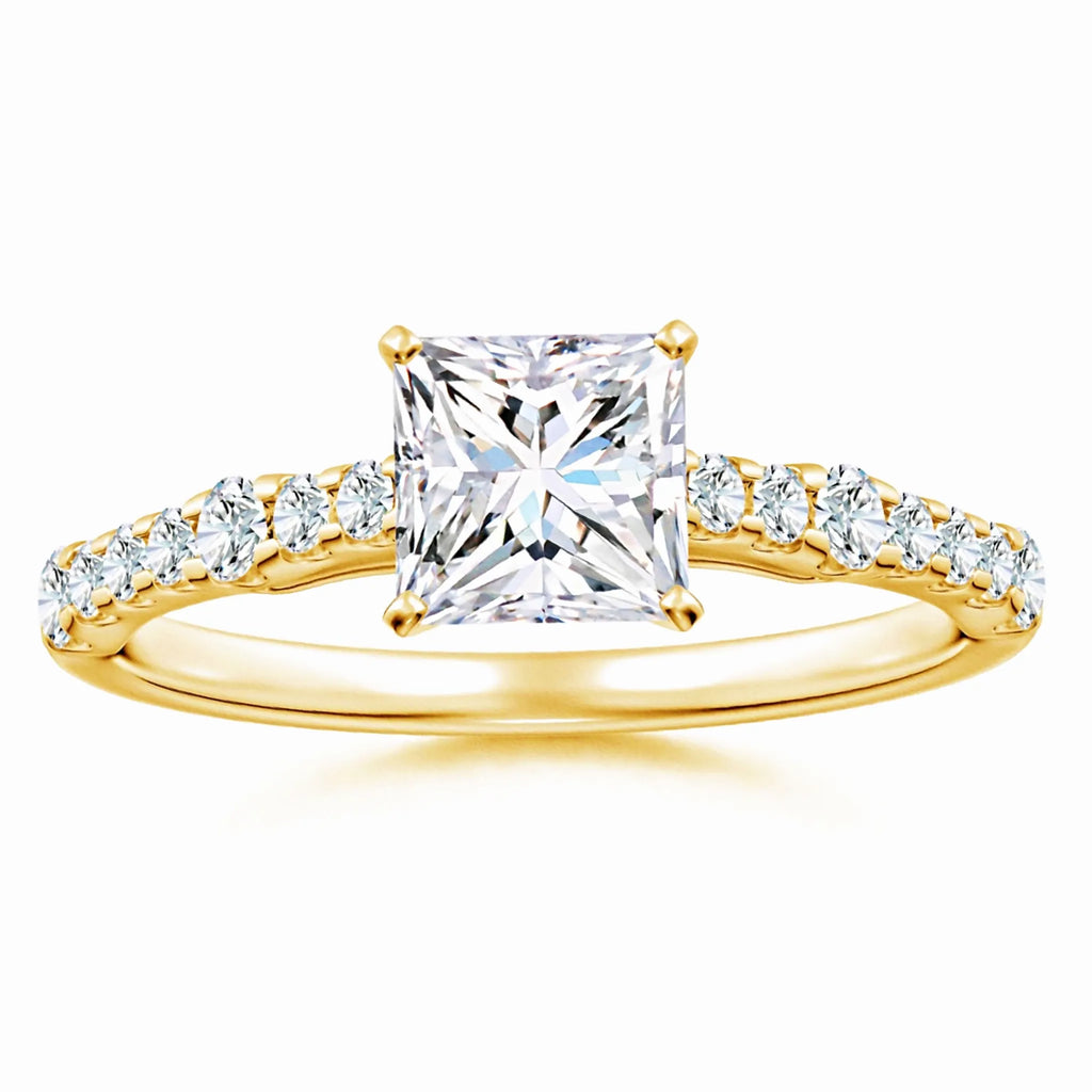 This Lab-Grown Solitaire Princess Cut Diamond Engagement Ring features a precisely cut princess diamond, offering exceptional brilliance and modern elegance. Crafted with sustainable lab-grown diamond technology, it provides an ethical and eco-friendly alternative without compromising on quality or sparkle. Perfect for those seeking a timeless symbol of commitment with a contemporary edge.