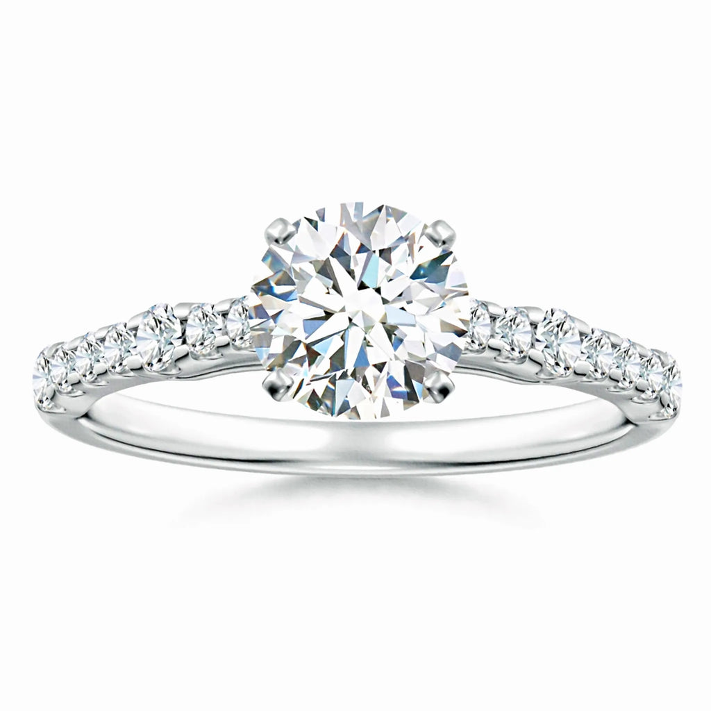 This Lab-Grown Solitaire Round Diamond Engagement Ring features a precisely cut round diamond created through advanced laboratory processes, ensuring exceptional clarity and brilliance. Expertly set in a classic solitaire design, it offers timeless elegance with ethical and sustainable origins. Ideal for those seeking a high-quality, conflict-free diamond that combines beauty with responsible craftsmanship.