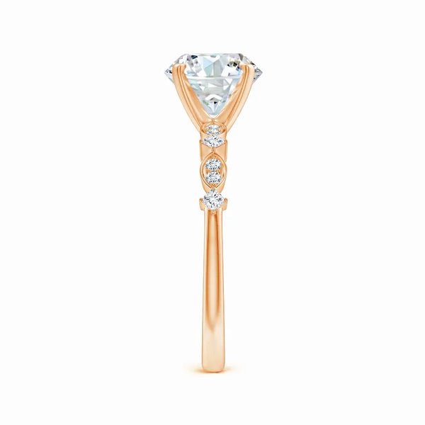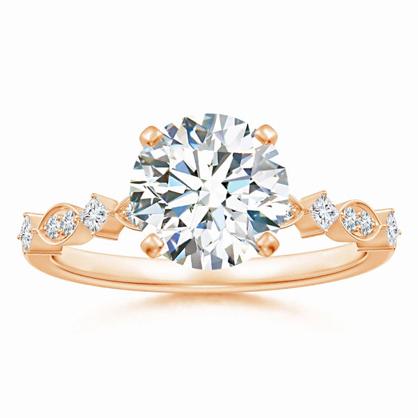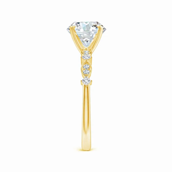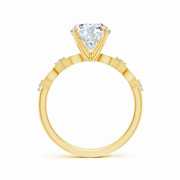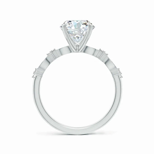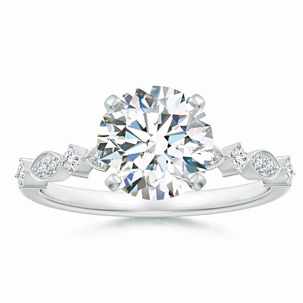 This engagement ring features a round lab-grown diamond expertly set to highlight its brilliance and ethical origin. The elegant marquise motif adds a timeless, sophisticated touch, enhancing the ring's unique design. Crafted with precision, it offers a sustainable choice without compromising on quality or sparkle, perfect for those seeking a refined and responsible symbol of commitment.