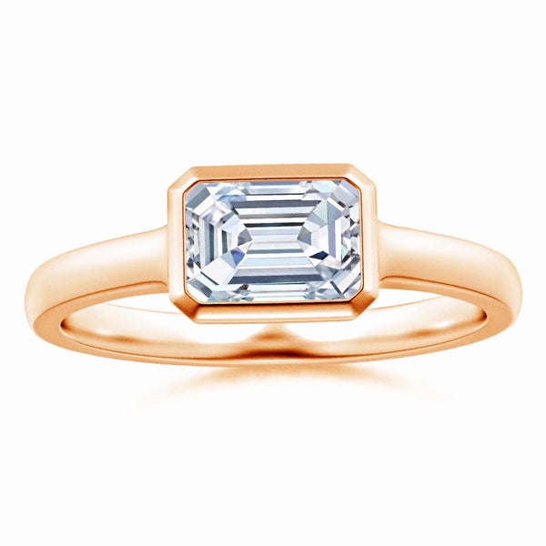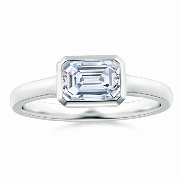 This Lab Grown East West Emerald Cut Diamond Solitaire Ring features a precisely cut emerald-shaped diamond set horizontally, offering a modern twist on classic elegance. Crafted with sustainable lab-grown diamond technology, it delivers exceptional brilliance and clarity while minimizing environmental impact. The solitaire design highlights the diamond’s unique shape and sparkle, making it an expert choice for those seeking refined sophistication and ethical luxury in fine jewelry.