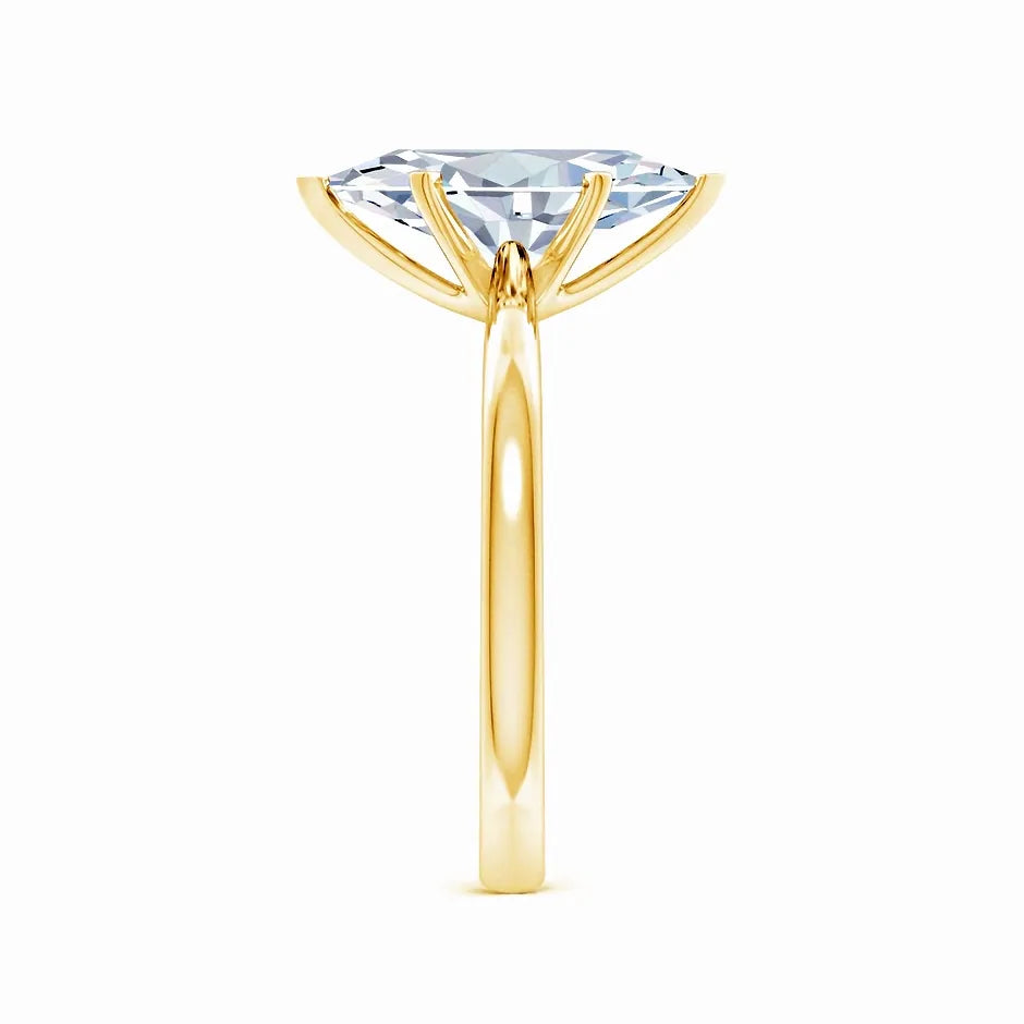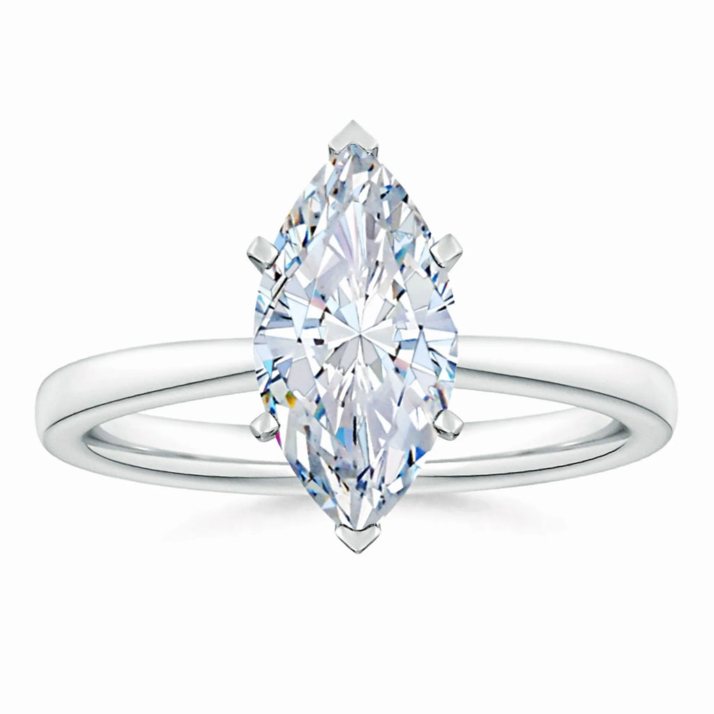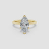 This solitaire engagement ring features a lab-grown marquise diamond set in a reverse tapered setting, enhancing the stone’s elongated shape and brilliance. Crafted with precision, the design offers a modern yet timeless appeal, ensuring the diamond remains the focal point. Ideal for those seeking an ethical and expertly crafted symbol of commitment.