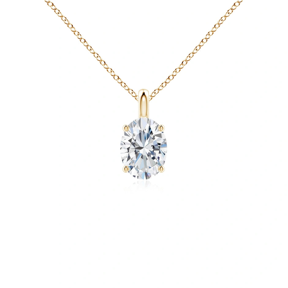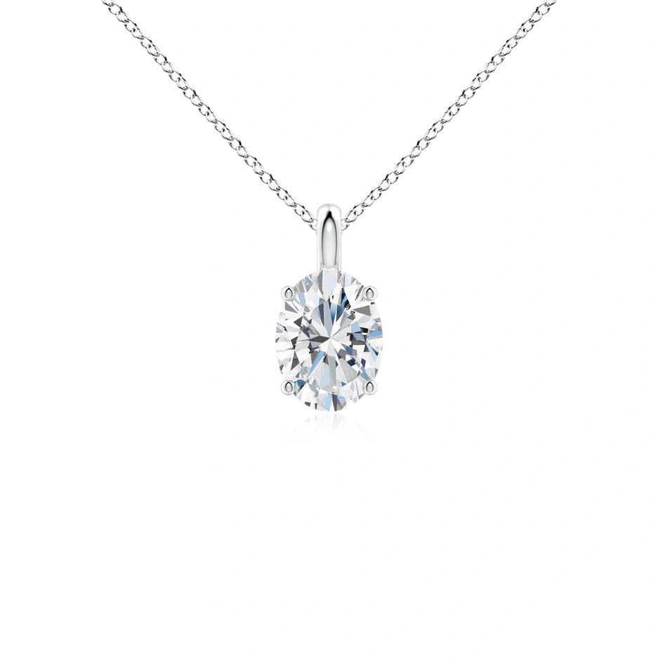 Elevate your elegance with this Lab-Grown Solitaire Oval Diamond Classic Pendant. Expertly crafted, it features a brilliant oval-cut diamond that offers exceptional clarity and sparkle, embodying sustainable luxury. Perfectly set to highlight its timeless design, this pendant adds refined sophistication to any ensemble while supporting ethical jewelry choices.