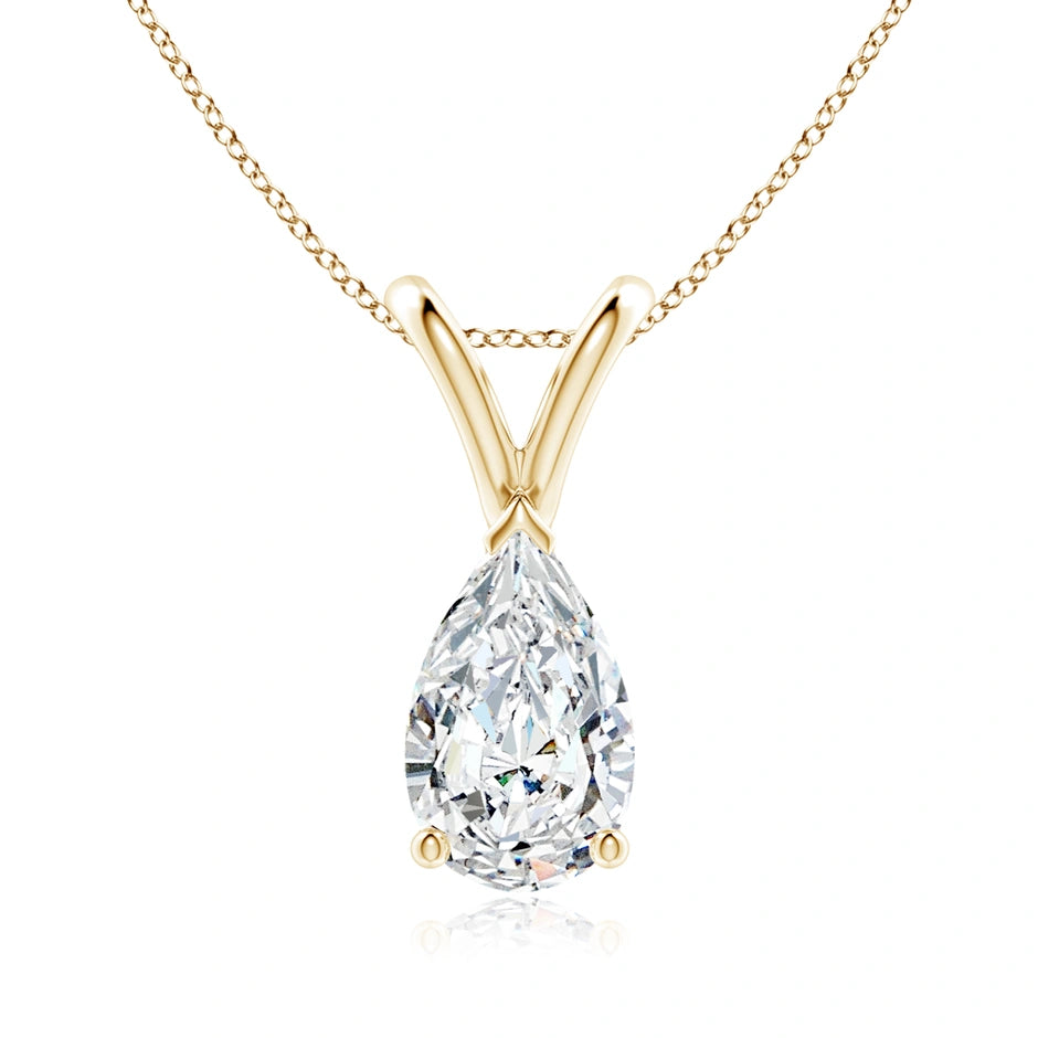 This Lab-Grown V-Bale Pear-Shaped Diamond Solitaire Pendant features a precisely cut pear-shaped diamond created through advanced laboratory processes, ensuring exceptional clarity and brilliance. The V-bale setting securely holds the solitaire diamond while allowing maximum light exposure for enhanced sparkle. Ideal for those seeking an ethical and sustainable alternative to mined diamonds, this pendant combines timeless elegance with modern craftsmanship, making it a refined choice for everyday wear or special occasions.