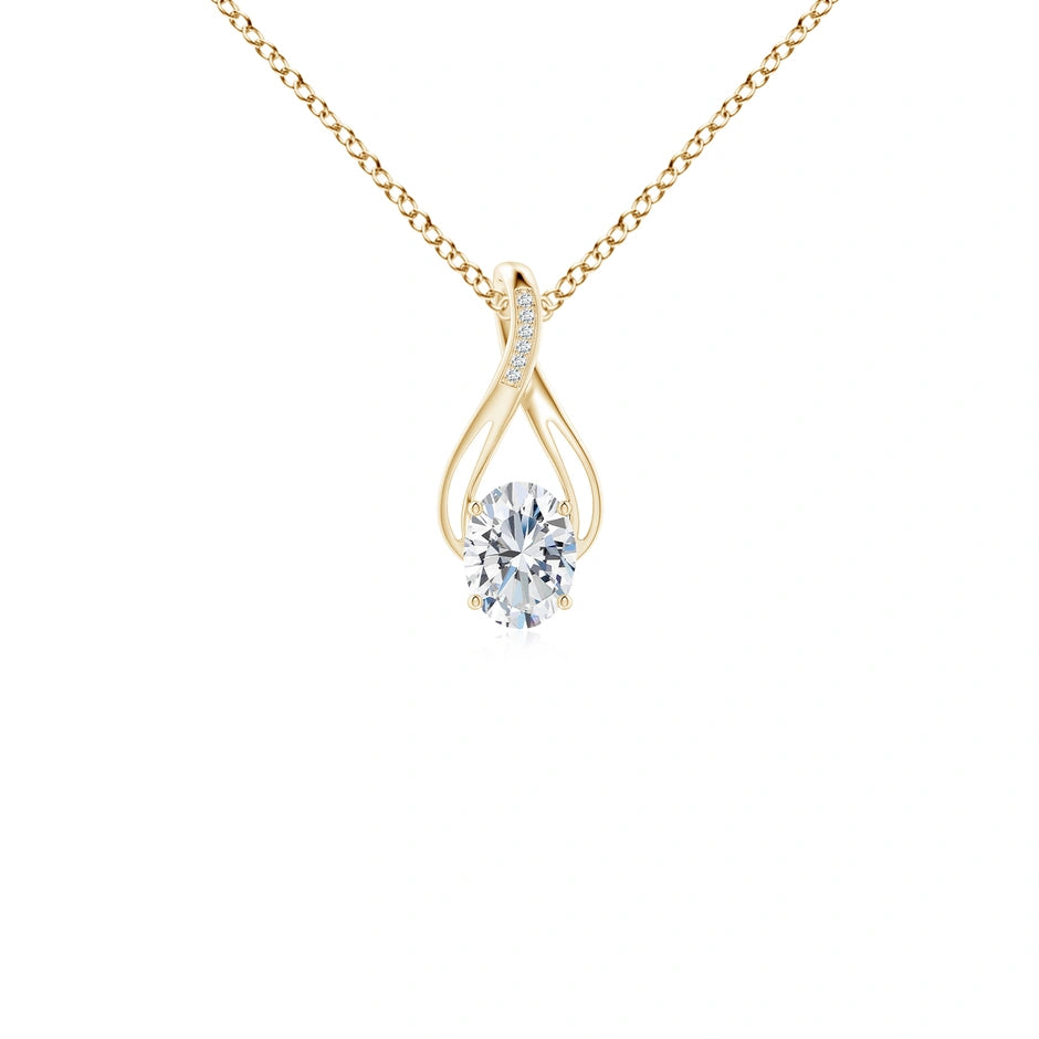 Elevate your jewelry collection with this Oval Lab-Grown Diamond Infinity Twist Pendant. Expertly crafted, it features a stunning oval-shaped lab-grown diamond set within an elegant infinity twist design, accented by delicate diamond details. This pendant combines sustainable luxury with timeless symbolism, making it a refined choice for those who appreciate both ethical sourcing and sophisticated style. Perfect for daily wear or special occasions, it adds a subtle yet captivating sparkle to any outfit.