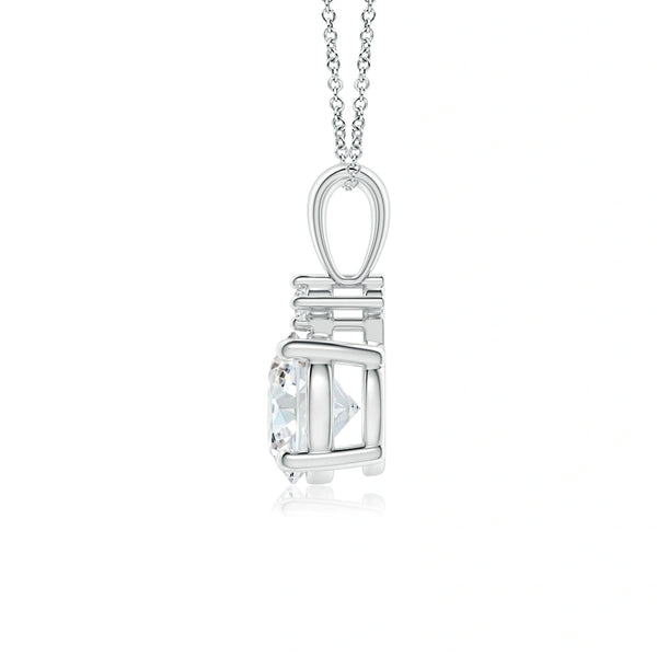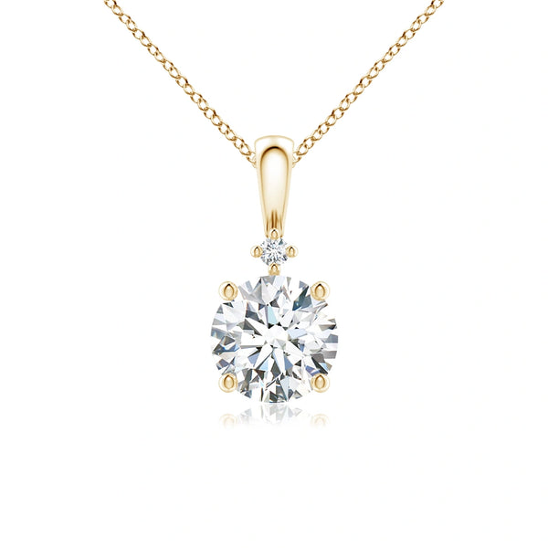 This Round Lab-Grown Diamond Solitaire Pendant features a precisely cut central diamond, enhanced by subtle accent stones that add depth and brilliance. Crafted with expert attention to detail, it offers a sustainable and ethically sourced alternative to traditional diamonds, delivering exceptional sparkle and timeless elegance suitable for any occasion.