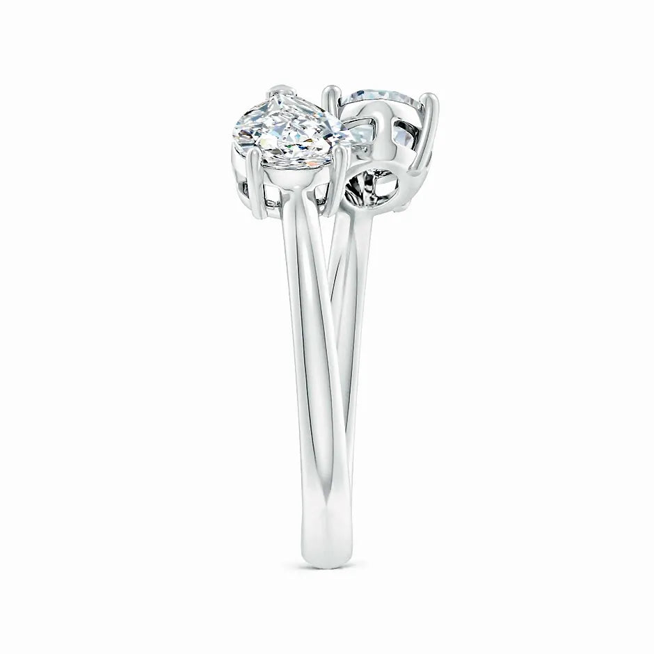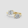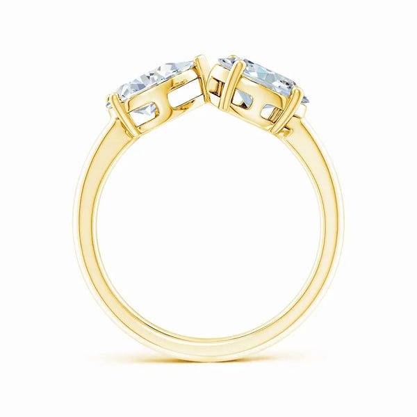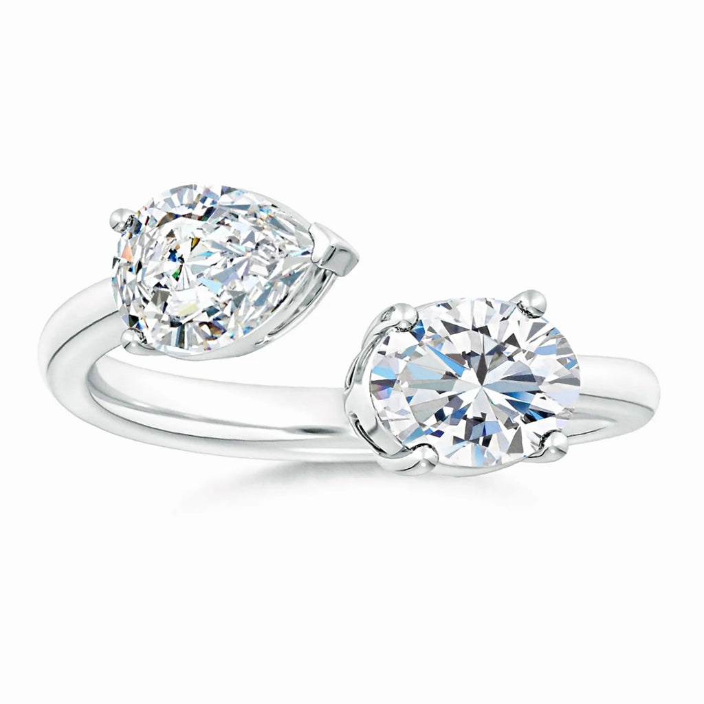 This Lab-Grown Oval & Pear Diamond Two-Stone Open Ring features expertly crafted lab-grown diamonds set in an open band design. The combination of oval and pear shapes creates a sophisticated contrast, enhancing brilliance and elegance. Ideal for those seeking sustainable luxury, this ring offers exceptional sparkle with ethical sourcing, making it a refined choice for modern jewelry connoisseurs.
