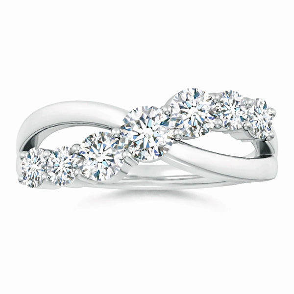 This Lab-Grown Graduated Round Diamond Broad Fashion Ring features a striking arrangement of round diamonds that gradually increase in size, creating a sophisticated and balanced look. Crafted with precision, the broad band design offers both comfort and a bold statement, making it an ideal choice for those seeking sustainable luxury without compromising on brilliance or style. Perfect for elevating any ensemble with expert craftsmanship and ethical elegance.