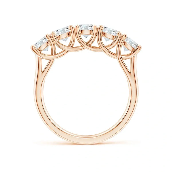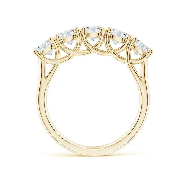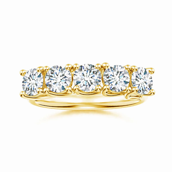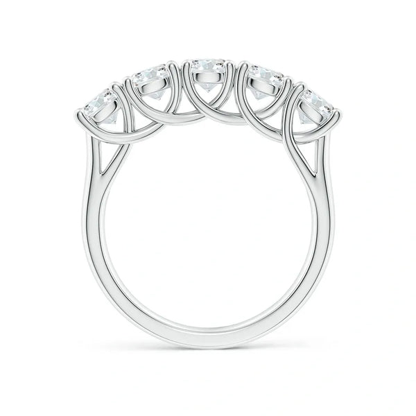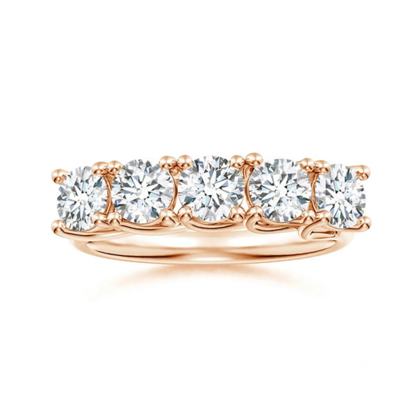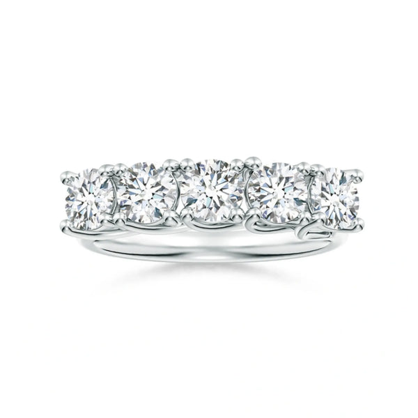This Lab-Grown Half Eternity Five Stone Diamond Wedding Ring features five precisely cut lab-grown diamonds set in a half-eternity band, offering enduring brilliance and ethical elegance. Crafted to balance timeless design with sustainable sourcing, it provides a sophisticated symbol of commitment that combines quality craftsmanship with responsible luxury. Ideal for those seeking a refined and environmentally conscious choice in wedding jewelry.