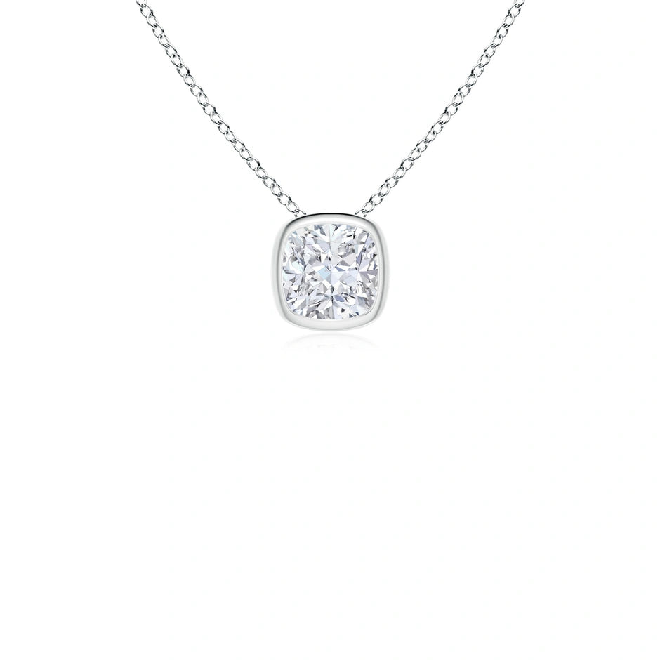 This pendant features a lab-grown cushion-cut diamond expertly set in a sleek bezel setting, offering a modern yet timeless solitaire design. The bezel setting securely frames the diamond, enhancing its brilliance while providing durability for everyday wear. Crafted with precision, this pendant combines ethical sourcing with elegant craftsmanship, making it an ideal choice for those seeking a sophisticated and sustainable fine jewelry piece.