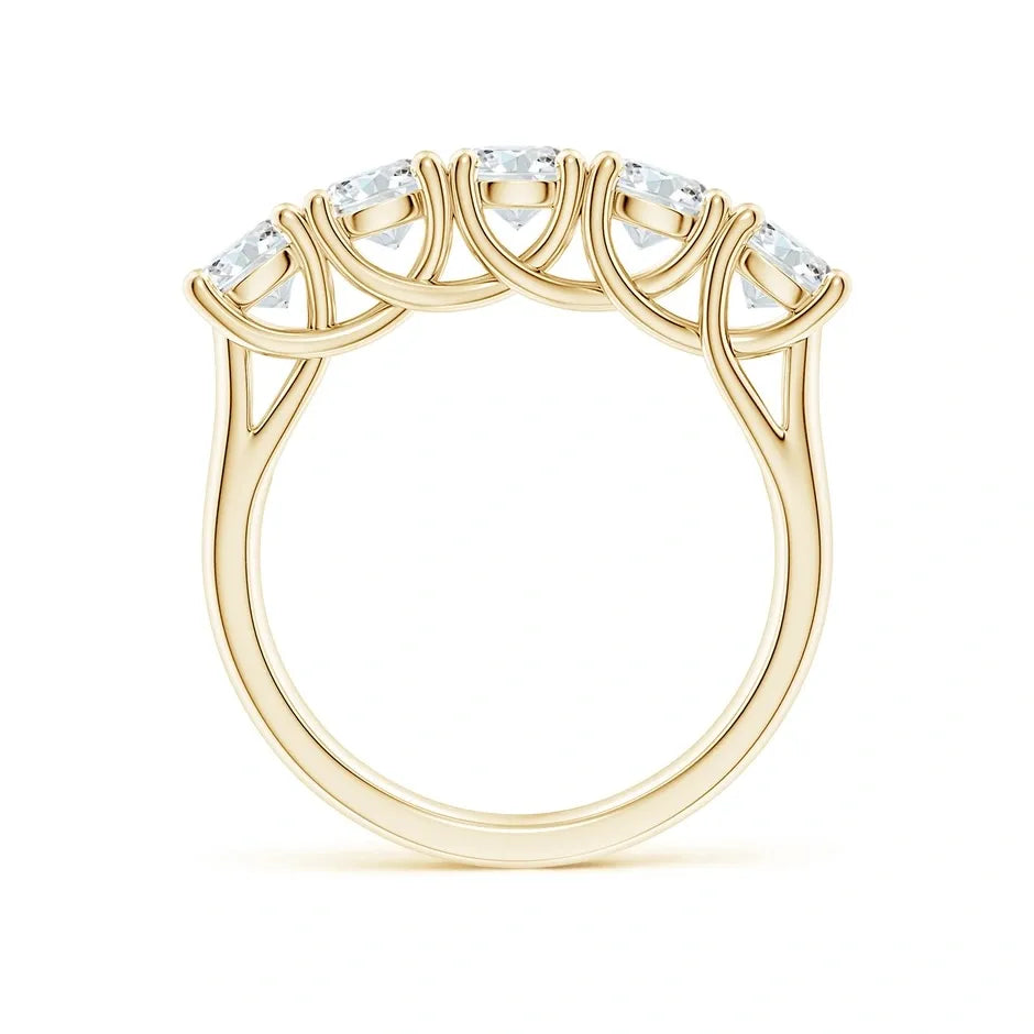 This Lab-Grown Half Eternity Five Stone Diamond Wedding Ring features five precisely cut lab-grown diamonds set in a half-eternity band, offering enduring brilliance and ethical elegance. Crafted to balance timeless design with sustainable sourcing, it provides a sophisticated symbol of commitment that combines quality craftsmanship with responsible luxury. Ideal for those seeking a refined and environmentally conscious choice in wedding jewelry.