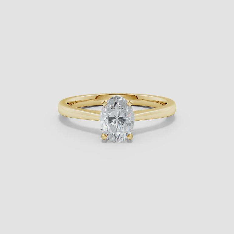 This engagement ring features a lab-grown oval diamond expertly set in a knife edge solitaire setting, combining modern sustainability with timeless elegance. The precise knife edge design enhances the diamond’s brilliance while providing a sleek, contemporary profile. Crafted for durability and refined style, this ring offers an ethical choice without compromising on quality or sophistication. Ideal for those seeking a distinctive and responsible symbol of commitment.