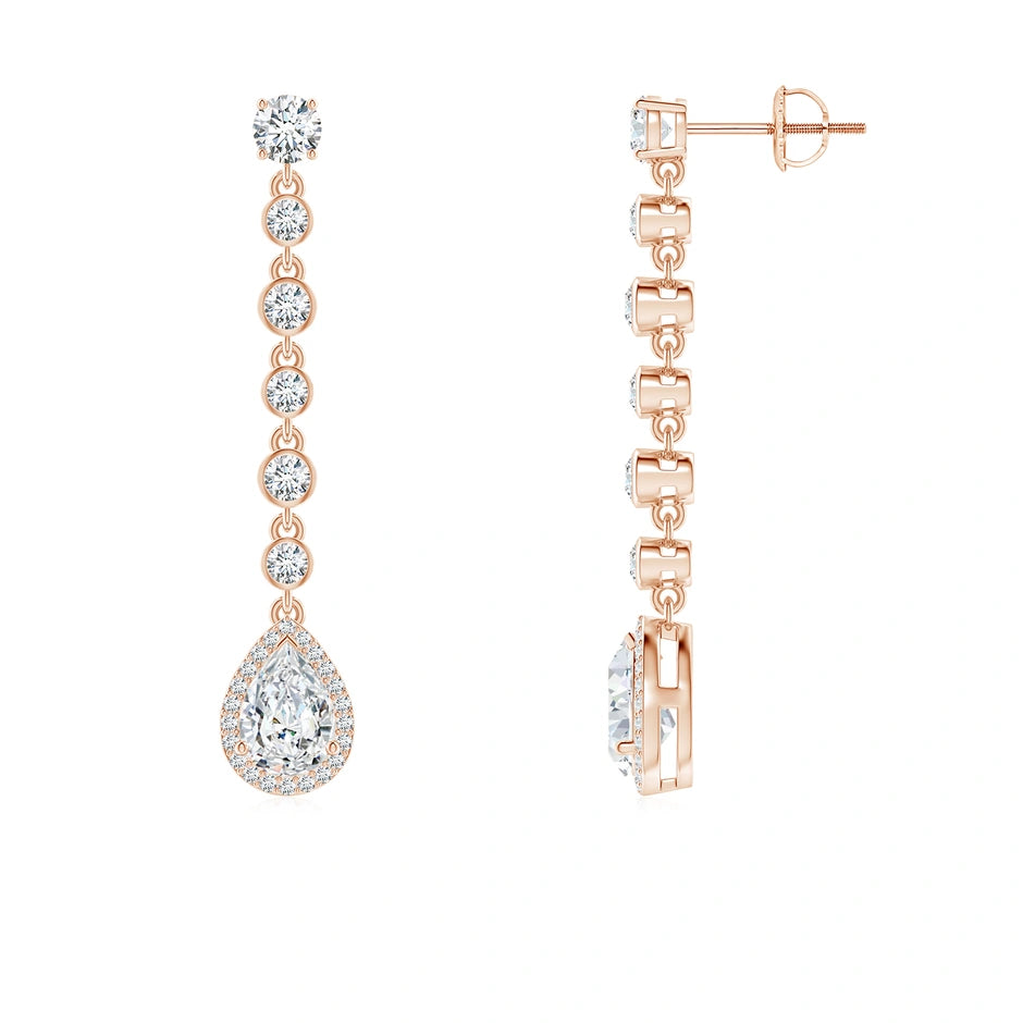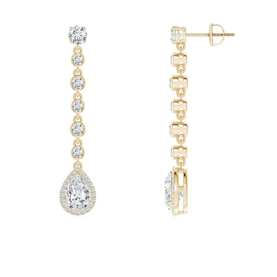These Lab-Grown Pear Diamond Halo Drop Earrings feature expertly crafted pear-shaped diamonds surrounded by a delicate halo, enhancing their brilliance. The bezel-set accents add a modern touch while securely framing each stone, ensuring durability and elegance. Perfect for those seeking sustainable luxury, these earrings combine ethical craftsmanship with timeless design, making them an exquisite addition to any jewelry collection.